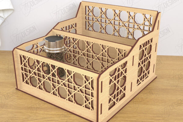 Intra απο ξύλο plywood 3mm-4mm πάχος – Κοπή λέιζερ με ράφι μπαχαρικών | Desktop Organizer Δίασταση 20×20 cm INTRAFABR-120023688