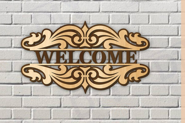 Intra απο ξύλο plywood 3mm-4mm πάχος – Κοπή λέιζερ πινακίδας δύο επιπέδων “Καλώς ήρθατε”. Δίασταση 20×20 cm INTRAFABR-115220469