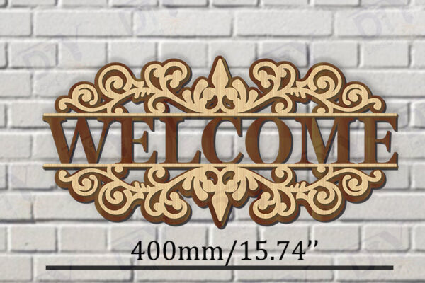 Intra απο ξύλο plywood 3mm-4mm πάχος – Κοπή λέιζερ πινακίδας δύο επιπέδων “Καλώς ήρθατε”. Δίασταση 20×20 cm INTRAFABR-117346225