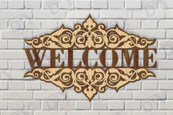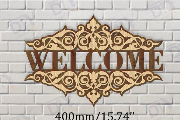 Intra απο ξύλο plywood 3mm-4mm πάχος – Κοπή λέιζερ πινακίδας δύο επιπέδων “Καλώς ήρθατε”. Δίασταση 20×20 cm INTRAFABR-117347691