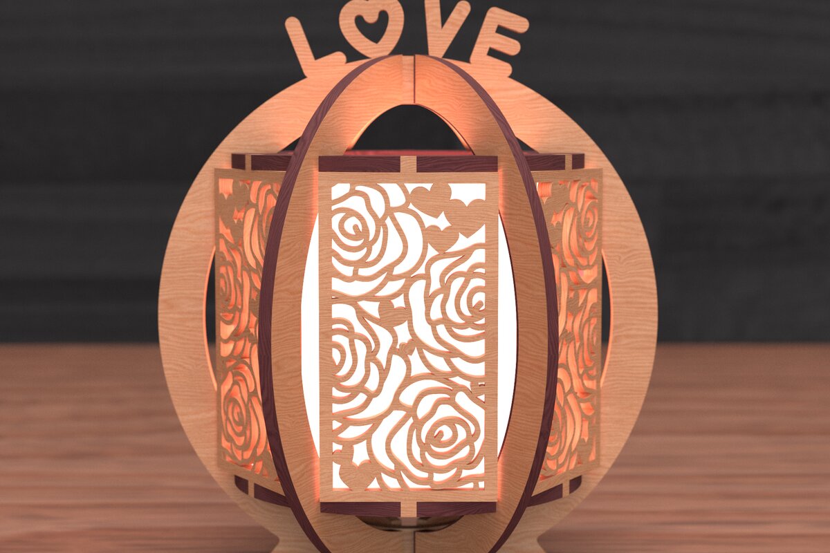 Intra απο ξύλο plywood 3mm-4mm πάχος – Κοπή λέιζερ φαναριού με τριαντάφυλλο Αγίου Βαλεντίνου Δίασταση 20×20 cm INTRAFABR-111860707