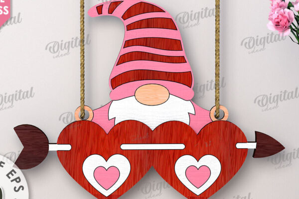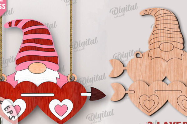 Intra απο ξύλο plywood 3mm-4mm πάχος – Κοπή λέιζερ Gnome για την Ημέρα του Αγίου Βαλεντίνου Δίασταση 20×20 cm INTRAFABR-112500521