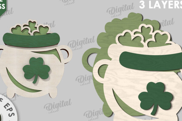 Intra απο ξύλο plywood 3mm-4mm πάχος – Κοπή με λέιζερ καζάνι St Patrick’s Day Δίασταση 20×20 cm INTRAFABR-114510745