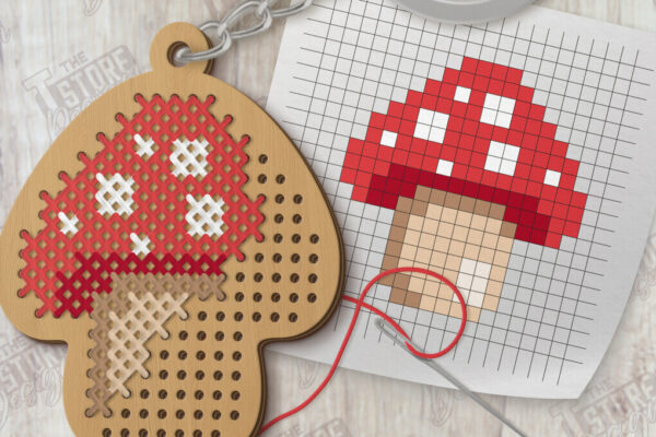 Intra απο ξύλο plywood 3mm-4mm πάχος – Κοπή με λέιζερ μπρελόκ με καλοκαιρινή σταυροβελονιά Δίασταση 5×5 cm INTRAFABR-123505266