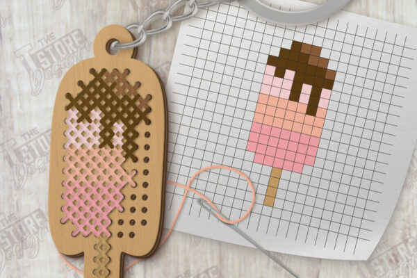 Intra απο ξύλο plywood 3mm-4mm πάχος – Κοπή με λέιζερ μπρελόκ με καλοκαιρινή σταυροβελονιά Δίασταση 5×5 cm INTRAFABR-123505272