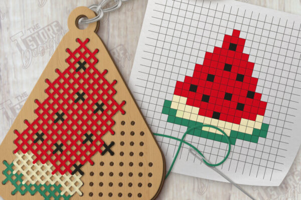 Intra απο ξύλο plywood 3mm-4mm πάχος – Κοπή με λέιζερ μπρελόκ με καλοκαιρινή σταυροβελονιά Δίασταση 5×5 cm INTRAFABR-123770140