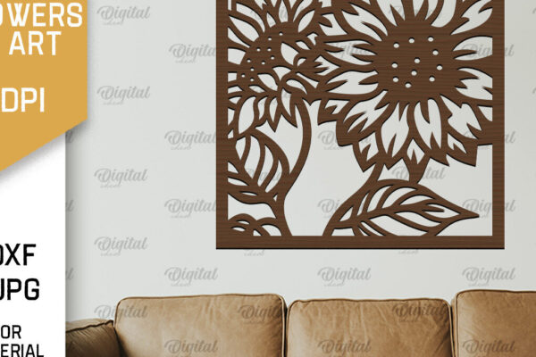Intra απο ξύλο plywood 3mm-4mm πάχος – Κοπή Laser Art Wall Art Sunflower. Floral Δίασταση 40×30 cm INTRAFABR-100464011
