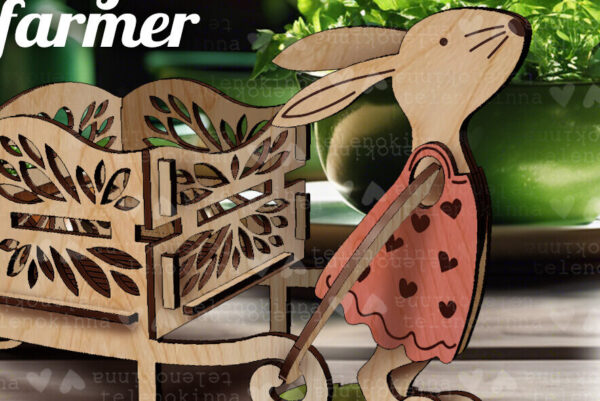 Intra απο ξύλο plywood 3mm-4mm πάχος – Κορίτσι Κουνελάκι Αγρότης| Πασχαλινή διακόσμηση Δίασταση 15×15 cm INTRAFABR-114419098