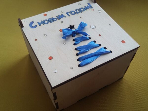 Intra απο ξύλο plywood 3mm-4mm πάχος – Κορδέλα Χριστουγεννιάτικο Δέντρο Κουτί δώρου με κρεμαστά παιχνίδια και ξύλο νιφάδων χιονιού 15×15 cm INTRAVECTRY-MY555974