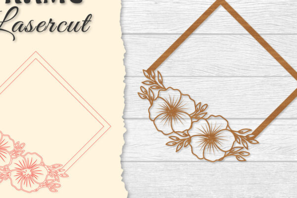 Intra απο ξύλο plywood 3mm-4mm πάχος – Κορνίζα Λουλούδια κοπής με λέιζερ Δίασταση 20×25 cm INTRAFABR-122655810