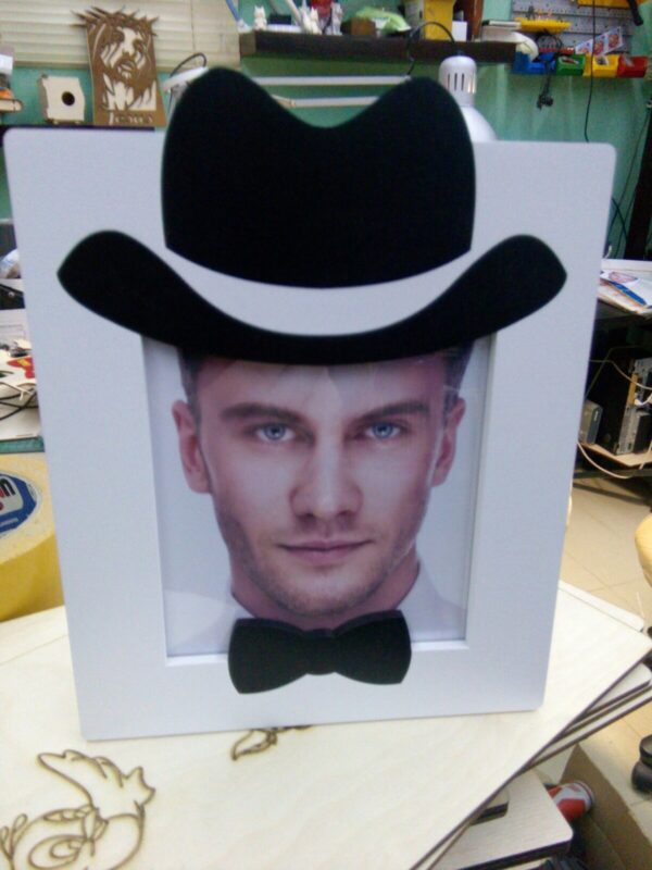 Intra απο ξύλο plywood 3mm-4mm πάχος – Κορνίζα με καπέλο και φιόγκο Δίασταση 30×30 cm Intraeaxys-eoxle3qo