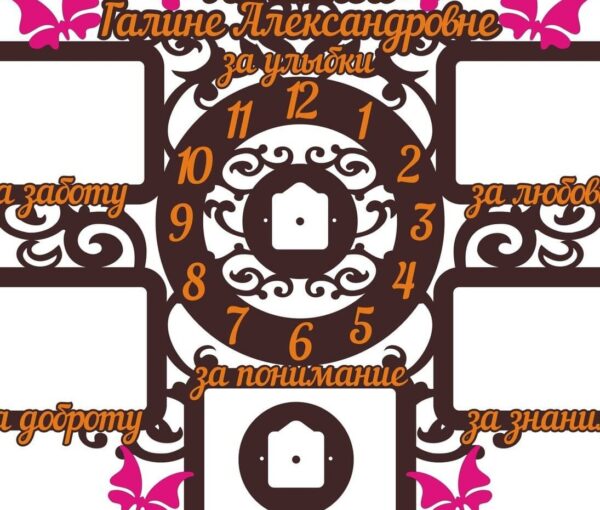 Intra απο ξύλο plywood 3mm-4mm πάχος – Κορνίζα με πρότυπο ρολόι και πεταλούδες 40×45 cm INTRAVECTRY-MY556126