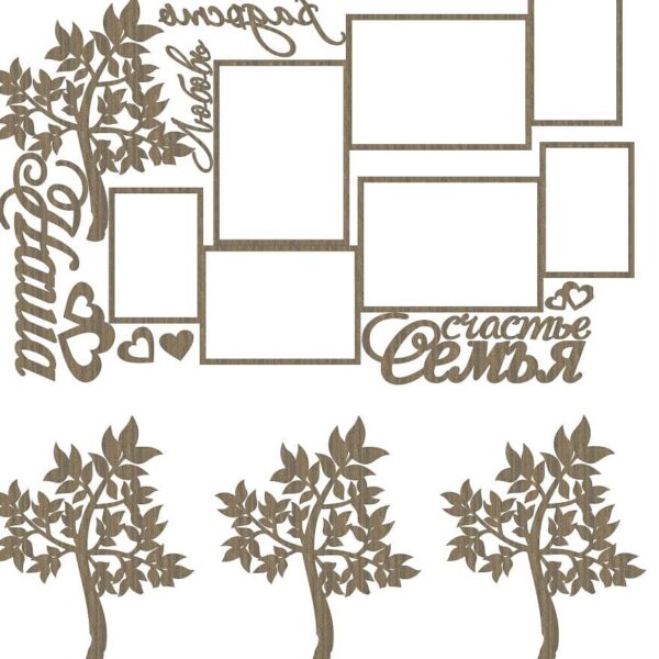 Intra απο ξύλο plywood 3mm-4mm πάχος – Κορνίζα φωτογραφιών Happy Family Collage με ξύλο δέντρου 20×20 cm INTRAVECTRY-MY555383