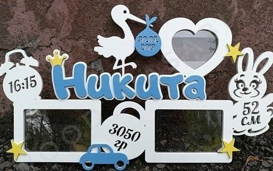 Intra απο ξύλο plywood 3mm-4mm πάχος – Κορνίζα φωτογραφιών μετρήσεων γέννησης παιδιού 10×10 cm INTRAVECTRY-MY556679