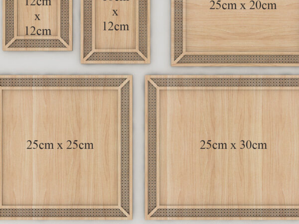 Κορνίζες με μοτίβο από ζαχαροκάλαμο ρατάν 238 Πρόκειται για ψηφιακό σχεδίου, ιδανικό για κοπή με ή plotter. Κατασκευασμένο απο Ξύλο από plywood [3mm ή 4mm], κομμένο με ακρίβεια στην βιοτεχνία Intrahome . Το φυσικό ξύλο προσφέρει μια κομψή, αυθεντική υφή και μπορεί εύκολα να βαφτεί ή να διακοσμηθεί σύμφωνα με το προσωπικό σας γούστο. Ελληνική παραγωγή – Κατασκευάζεται στην Ελλάδα με προσοχή στη λεπτομέρεια και υψηλές προδιαγραφές ποιότητας. ✔️ Υλικό: Plywood υψηλής ποιότητας ✔️ Διατίθεται σε πάχος 3mm ή 4mm ✔️ Ελαφρύ, ανθεκτικό και εύκολο στη χρήση ✔️ Ιδανικό για βάψιμο, χάραξη, κόλληση και χειροτεχνίες ✔️ Κατάλληλο για μπομπονιέρες, διακόσμηση, δώρα και DIY projects ✅ Εγγύηση 2 ετών – Σε περίπτωση σπασίματος, η αντικατάσταση γίνεται άμεσα, χάρη στην τοπική ελληνική παραγωγή μας. Ιδανικό για δημιουργικούς ανθρώπους που αγαπούν το DIY. Μπορεί να γίνει ξεχωριστό δώρο με προσωπικό χαρακτήρα. Φέρνει “χειροποίητη” αισθητική στη διακόσμηση. -files- Ελληνική χειροποίητη παραγωγή → στηρίζετε τοπικούς δημιουργούς. Κάθε κομμάτι έχει τη δική του φυσική ξύλινη υφή (μοναδικότητα). Δυνατότητα ειδικής παραγγελίας (άλλα μεγέθη / σχήματα). Άμεση ανταπόκριση & υποστήριξη. Εγγύηση αντικατάστασης (ήδη το έχεις). Μπορεί να μετατραπεί σε προσωποποιημένο αντικείμενο με χάραξη ή χρώμα. -files– Μη τοξικό υλικό → ασφαλές για παιδιά (με επίβλεψη). Ελαφρύ και εύκολο στη μεταφορά. Συσκευάζεται με προστασία για να φτάνει πάντα άθικτο. -files–files- Ιδανικό για event planners, καταστήματα ειδών δώρου, κατασκευαστές . Διατίθεται σε χονδρική με ειδικές τιμές & εκπτώσεις σε ποσότητα. Ανοιχτές Αποχρώσεις
