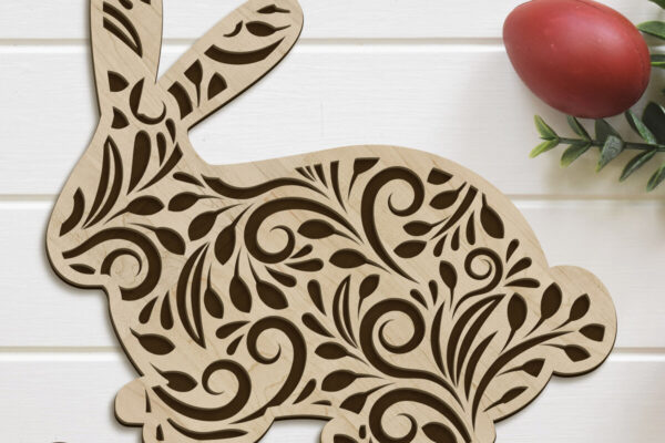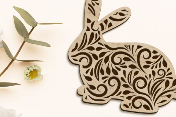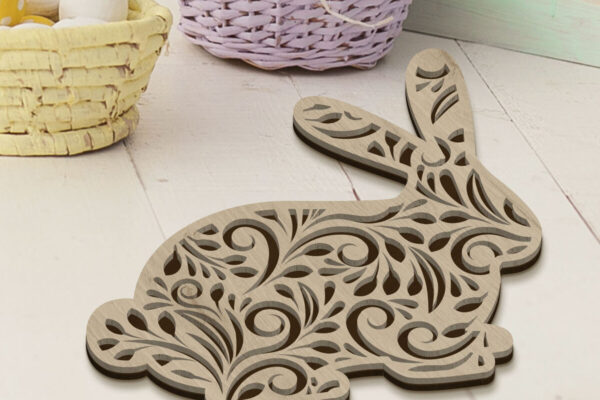 Intra απο ξύλο plywood 3mm-4mm πάχος – Κουνέλι Πασχαλινό πρότυπο με στρώσεις, ξύλινη κοπή Δίασταση 20×20 cm INTRAFABR-89751004