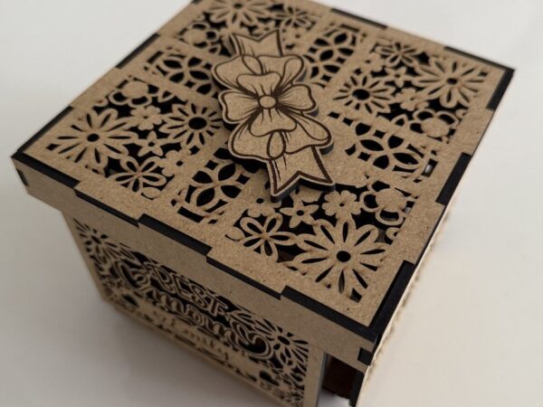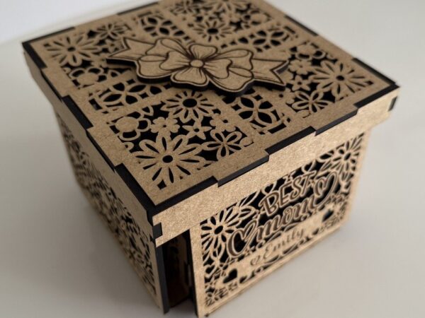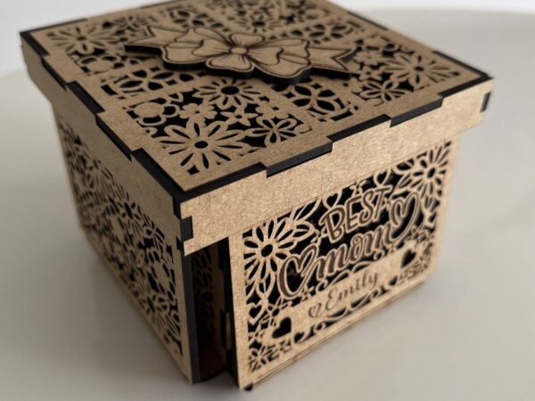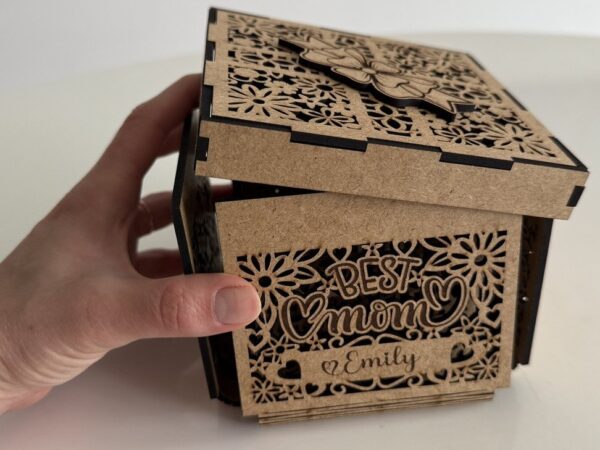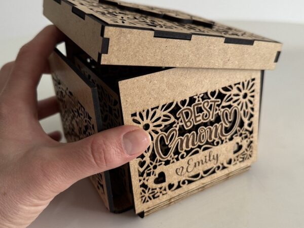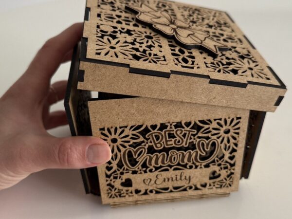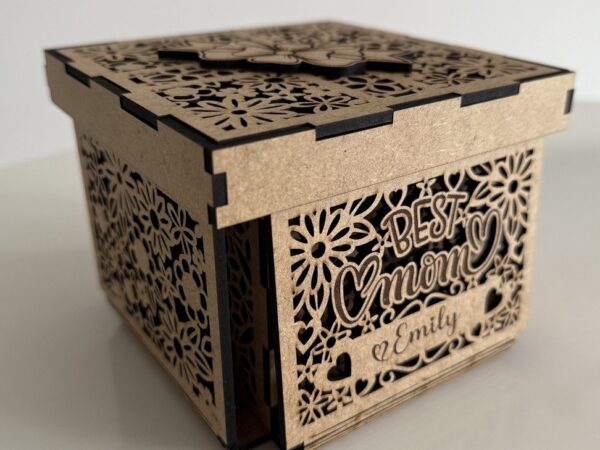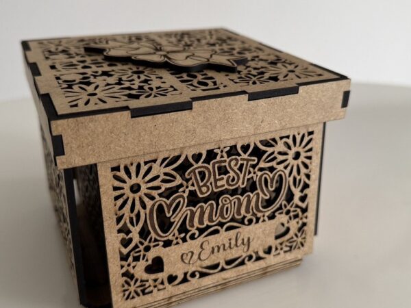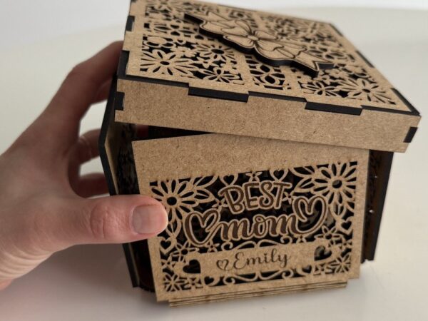 Κουτί δώρου για τη μητέρα Πρόκειται για ψηφιακό σχεδίου, ιδανικό για κοπή με ή plotter. Κατασκευασμένο απο Ξύλο από plywood [3mm ή 4mm], κομμένο με ακρίβεια στην βιοτεχνία Intrahome . Το φυσικό ξύλο προσφέρει μια κομψή, αυθεντική υφή και μπορεί εύκολα να βαφτεί ή να διακοσμηθεί σύμφωνα με το προσωπικό σας γούστο. Ελληνική παραγωγή – Κατασκευάζεται στην Ελλάδα με προσοχή στη λεπτομέρεια και υψηλές προδιαγραφές ποιότητας. ✔️ Υλικό: Plywood υψηλής ποιότητας ✔️ Διατίθεται σε πάχος 3mm ή 4mm ✔️ Ελαφρύ, ανθεκτικό και εύκολο στη χρήση ✔️ Ιδανικό για βάψιμο, χάραξη, κόλληση και χειροτεχνίες ✔️ Κατάλληλο για μπομπονιέρες, διακόσμηση, δώρα και DIY projects ✅ Εγγύηση 2 ετών – Σε περίπτωση σπασίματος, η αντικατάσταση γίνεται άμεσα, χάρη στην τοπική ελληνική παραγωγή μας. Ιδανικό για δημιουργικούς ανθρώπους που αγαπούν το DIY. Μπορεί να γίνει ξεχωριστό δώρο με προσωπικό χαρακτήρα. Φέρνει “χειροποίητη” αισθητική στη διακόσμηση. -files- Ελληνική χειροποίητη παραγωγή → στηρίζετε τοπικούς δημιουργούς. Κάθε κομμάτι έχει τη δική του φυσική ξύλινη υφή (μοναδικότητα). Δυνατότητα ειδικής παραγγελίας (άλλα μεγέθη / σχήματα). Άμεση ανταπόκριση & υποστήριξη. Εγγύηση αντικατάστασης (ήδη το έχεις). Μπορεί να μετατραπεί σε προσωποποιημένο αντικείμενο με χάραξη ή χρώμα. -files– Μη τοξικό υλικό → ασφαλές για παιδιά (με επίβλεψη). Ελαφρύ και εύκολο στη μεταφορά. Συσκευάζεται με προστασία για να φτάνει πάντα άθικτο. -files–files- Ιδανικό για event planners, καταστήματα ειδών δώρου, κατασκευαστές . Διατίθεται σε χονδρική με ειδικές τιμές & εκπτώσεις σε ποσότητα. Ανοιχτές Αποχρώσεις