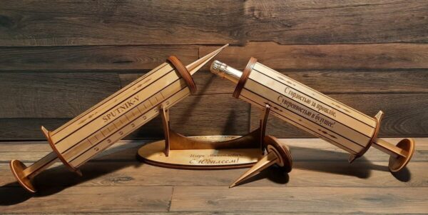 Intra απο ξύλο plywood 3mm-4mm πάχος – Κουτί δώρου με σύριγγα κρασιού Δίασταση 30×30 cm Intraeaxys-075ywgpo