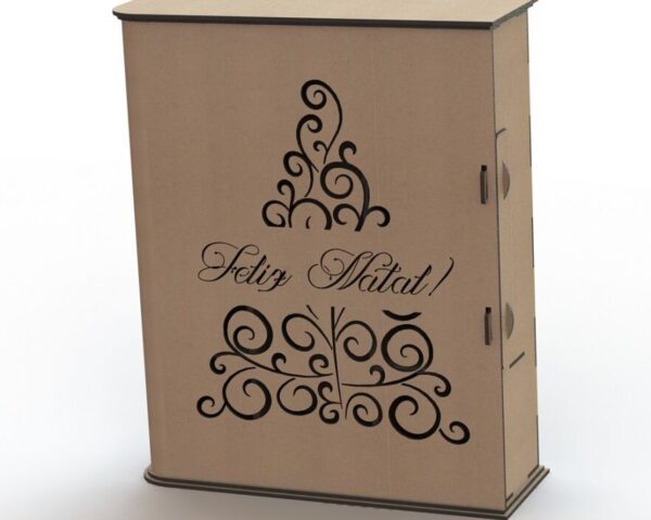 Intra απο ξύλο plywood 3mm-4mm πάχος – Κουτί δώρου Χριστουγεννιάτικου κρασιού Ένα μπουκάλι με δύο ποτήρια ξύλο κουτιού συσκευασίας 10×10 cm INTRAVECTRY-MY544188