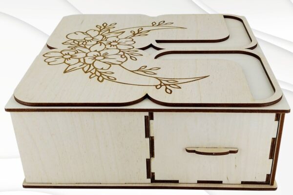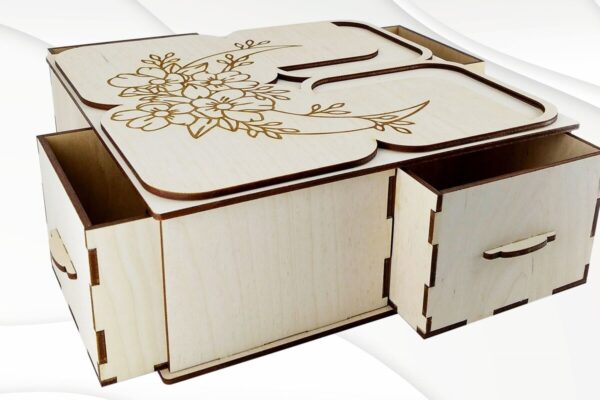 Κουτί δώρου 4 σε 1 Πρόκειται για ψηφιακό σχεδίου, ιδανικό για κοπή με ή plotter. Κατασκευασμένο απο Ξύλο από plywood [3mm ή 4mm], κομμένο με ακρίβεια στην βιοτεχνία Intrahome . Το φυσικό ξύλο προσφέρει μια κομψή, αυθεντική υφή και μπορεί εύκολα να βαφτεί ή να διακοσμηθεί σύμφωνα με το προσωπικό σας γούστο. Ελληνική παραγωγή – Κατασκευάζεται στην Ελλάδα με προσοχή στη λεπτομέρεια και υψηλές προδιαγραφές ποιότητας. ✔️ Υλικό: Plywood υψηλής ποιότητας ✔️ Διατίθεται σε πάχος 3mm ή 4mm ✔️ Ελαφρύ, ανθεκτικό και εύκολο στη χρήση ✔️ Ιδανικό για βάψιμο, χάραξη, κόλληση και χειροτεχνίες ✔️ Κατάλληλο για μπομπονιέρες, διακόσμηση, δώρα και DIY projects ✅ Εγγύηση 2 ετών – Σε περίπτωση σπασίματος, η αντικατάσταση γίνεται άμεσα, χάρη στην τοπική ελληνική παραγωγή μας. Ιδανικό για δημιουργικούς ανθρώπους που αγαπούν το DIY. Μπορεί να γίνει ξεχωριστό δώρο με προσωπικό χαρακτήρα. Φέρνει “χειροποίητη” αισθητική στη διακόσμηση. -files- Ελληνική χειροποίητη παραγωγή → στηρίζετε τοπικούς δημιουργούς. Κάθε κομμάτι έχει τη δική του φυσική ξύλινη υφή (μοναδικότητα). Δυνατότητα ειδικής παραγγελίας (άλλα μεγέθη / σχήματα). Άμεση ανταπόκριση & υποστήριξη. Εγγύηση αντικατάστασης (ήδη το έχεις). Μπορεί να μετατραπεί σε προσωποποιημένο αντικείμενο με χάραξη ή χρώμα. -files– Μη τοξικό υλικό → ασφαλές για παιδιά (με επίβλεψη). Ελαφρύ και εύκολο στη μεταφορά. Συσκευάζεται με προστασία για να φτάνει πάντα άθικτο. -files–files- Ιδανικό για event planners, καταστήματα ειδών δώρου, κατασκευαστές . Διατίθεται σε χονδρική με ειδικές τιμές & εκπτώσεις σε ποσότητα. Ανοιχτές Αποχρώσεις