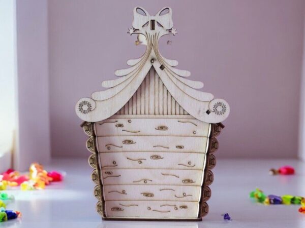 Intra απο ξύλο plywood 3mm-4mm πάχος – Κουτί καραμέλας Χριστουγεννιάτικου Σπίτι 10×10 cm INTRAVECTRY-MY554085