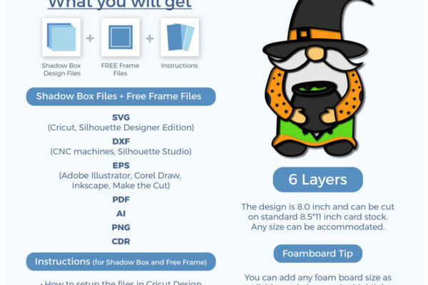 Κουτί σκιάς Halloween Gnomes, χαρτί κοπής Πρόκειται για ψηφιακό σχεδίου, ιδανικό για κοπή με ή plotter. Κατασκευασμένο απο Ξύλο από plywood [3mm ή 4mm], κομμένο με ακρίβεια στην βιοτεχνία Intrahome . Το φυσικό ξύλο προσφέρει μια κομψή, αυθεντική υφή και μπορεί εύκολα να βαφτεί ή να διακοσμηθεί σύμφωνα με το προσωπικό σας γούστο. Ελληνική παραγωγή – Κατασκευάζεται στην Ελλάδα με προσοχή στη λεπτομέρεια και υψηλές προδιαγραφές ποιότητας. ✔️ Υλικό: Plywood υψηλής ποιότητας ✔️ Διατίθεται σε πάχος 3mm ή 4mm ✔️ Ελαφρύ, ανθεκτικό και εύκολο στη χρήση ✔️ Ιδανικό για βάψιμο, χάραξη, κόλληση και χειροτεχνίες ✔️ Κατάλληλο για μπομπονιέρες, διακόσμηση, δώρα και DIY projects ✅ Εγγύηση 2 ετών – Σε περίπτωση σπασίματος, η αντικατάσταση γίνεται άμεσα, χάρη στην τοπική ελληνική παραγωγή μας. Ιδανικό για δημιουργικούς ανθρώπους που αγαπούν το DIY. Μπορεί να γίνει ξεχωριστό δώρο με προσωπικό χαρακτήρα. Φέρνει “χειροποίητη” αισθητική στη διακόσμηση. -files- Ελληνική χειροποίητη παραγωγή → στηρίζετε τοπικούς δημιουργούς. Κάθε κομμάτι έχει τη δική του φυσική ξύλινη υφή (μοναδικότητα). Δυνατότητα ειδικής παραγγελίας (άλλα μεγέθη / σχήματα). Άμεση ανταπόκριση & υποστήριξη. Εγγύηση αντικατάστασης (ήδη το έχεις). Μπορεί να μετατραπεί σε προσωποποιημένο αντικείμενο με χάραξη ή χρώμα. -files– Μη τοξικό υλικό → ασφαλές για παιδιά (με επίβλεψη). Ελαφρύ και εύκολο στη μεταφορά. Συσκευάζεται με προστασία για να φτάνει πάντα άθικτο. -files–files- Ιδανικό για event planners, καταστήματα ειδών δώρου, κατασκευαστές . Διατίθεται σε χονδρική με ειδικές τιμές & εκπτώσεις σε ποσότητα. Ανοιχτές Αποχρώσεις