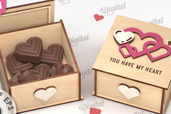 Intra απο ξύλο plywood 3mm-4mm πάχος – Κουτιά δώρου Αγίου Βαλεντίνου Πακέτο κοπής με λέιζερ Δίασταση 20×20 cm INTRAFABR-111675594