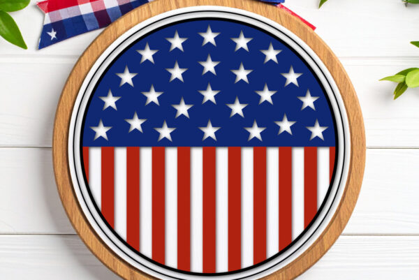 Intra απο ξύλο plywood 3mm-4mm πάχος – κρεμάστρας πινακίδων στρογγυλής πόρτας σημαίας ΗΠΑ Δίασταση 20×20 cm INTRAFABR-123523513