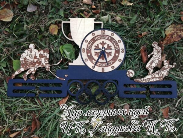Intra απο ξύλο plywood 3mm-4mm πάχος – Κρεμάστρα επίδειξης μεταλλίων χόκεϊ επί πάγου με ρολόι Δίασταση 30×30 cm Intraeaxys-yon0xvg7
