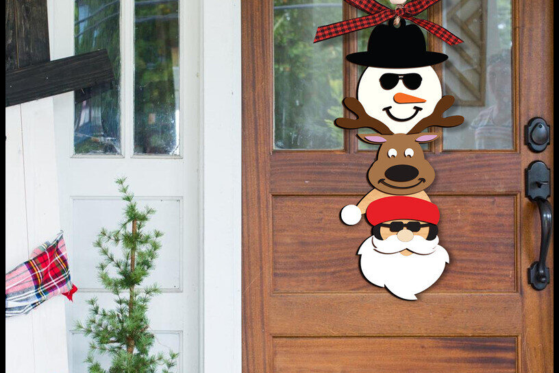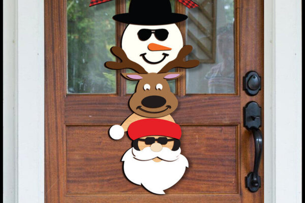 Intra απο ξύλο plywood 3mm-4mm πάχος – Κρεμάστρα πόρτας Άγιος Βασίλης, Ελάφια και Χιονάνθρωπος Δίασταση 20×20 cm INTRAFABR-120779427