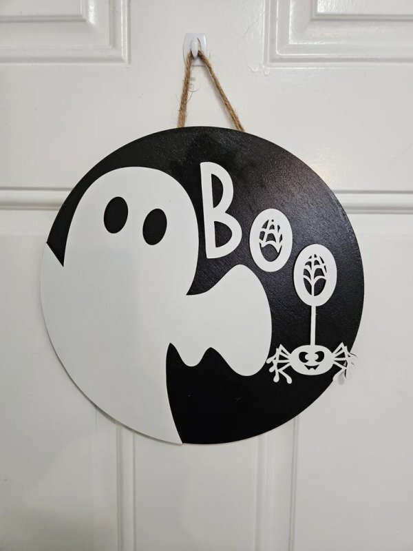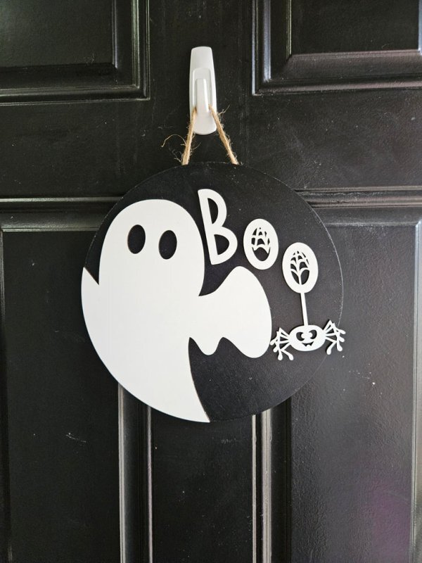 Intra απο ξύλο plywood 3mm-4mm πάχος – Κρεμάστρα πόρτας Halloween Boo Ghost Δίασταση 30×30 cm Intraeaxys-51ry8j3o