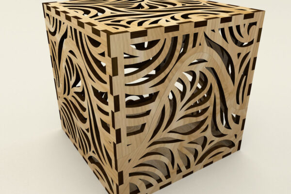 Intra απο ξύλο plywood Χρώμα wenge 3mm-4mm πάχος – Κυβικό κουτί με floral στολίδι Δίασταση 4×4 cm INTRAFABR-113804089