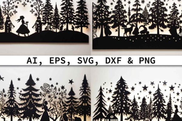 Intra απο ξύλο plywood 3mm-4mm πάχος – Κόψιμο από χαρτί Χριστουγεννιάτικο Δάσος Σκηνής Κουλούρι Δίασταση 20×20 cm INTRAFABR-80420642