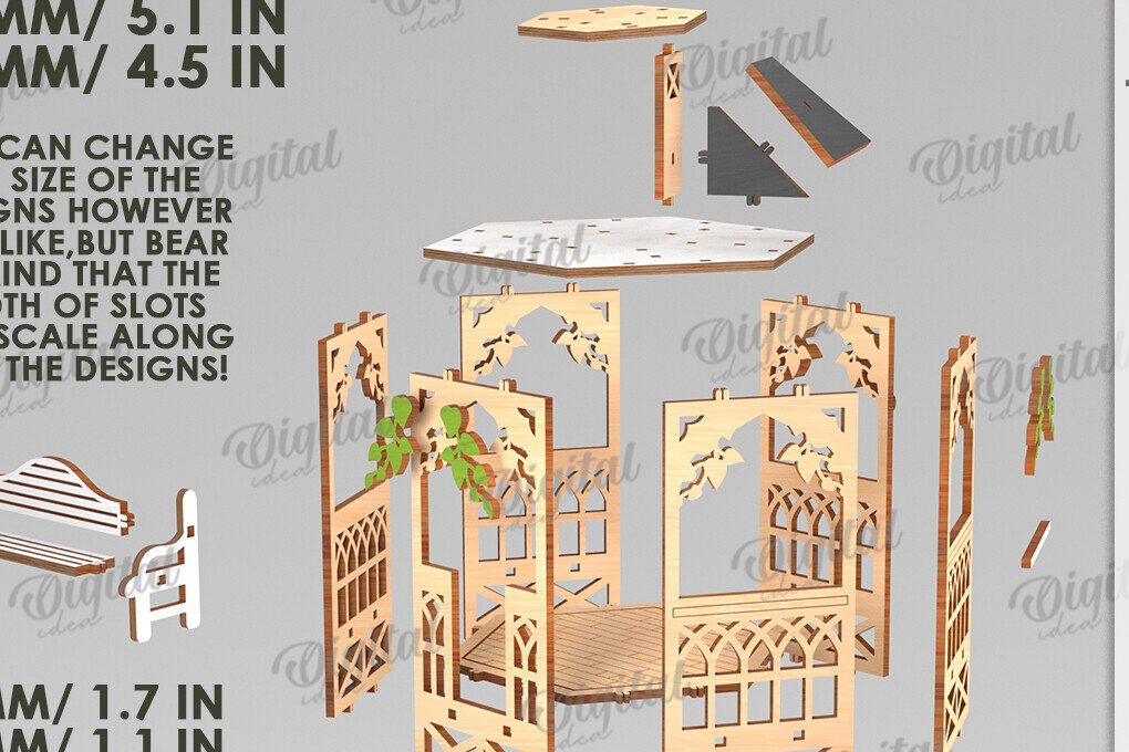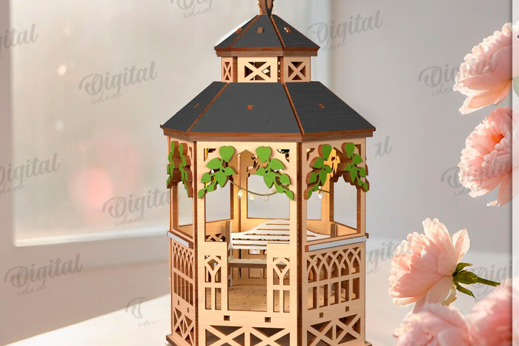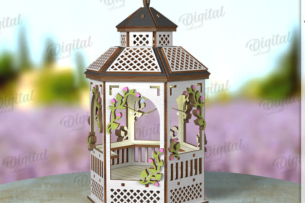 Intra απο ξύλο plywood 3mm-4mm πάχος Κόψιμο με λέιζερ με δέσμη 3D Gazebo Lanterns Δίασταση 30×20 cm INTRAFABR-121991667
