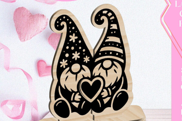 Intra απο ξύλο plywood 3mm-4mm πάχος – Κόψιμο με λέιζερ στολίδι Gnome Love Valentine Δίασταση 6×6 cm INTRAFABR-113427461