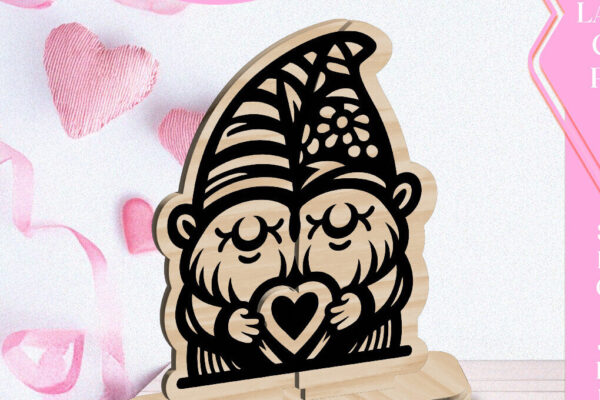 Intra απο ξύλο plywood 3mm-4mm πάχος – Κόψιμο με λέιζερ στολίδι Gnome Love Valentine Δίασταση 6×6 cm INTRAFABR-113351549