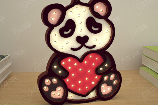 Intra απο ξύλο plywood 3mm-4mm πάχος – Λάμπα Led με στρώσεις για την ημέρα του Αγίου Βαλεντίνου | Αρκτοειδές ζώο της ασίας Δίασταση 20×20 cm INTRAFABR-110271693