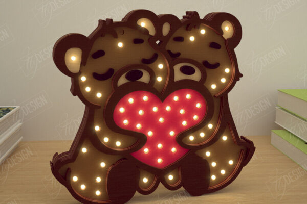 Intra απο ξύλο plywood 3mm-4mm πάχος – Λάμπα Led με στρώσεις για την ημέρα του Αγίου Βαλεντίνου | Αρκούδες Δίασταση 20×20 cm INTRAFABR-110271805