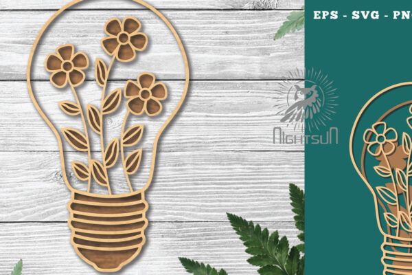 Intra απο ξύλο plywood 3mm-4mm πάχος – Λουλούδια σε λάμπα κομμένη διακόσμηση λέιζερ 5 Δίασταση 20×20 cm INTRAFABR-115873481