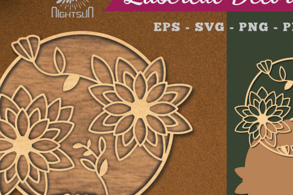 Intra απο ξύλο plywood 3mm-4mm πάχος – Λουλούδια Στρογγυλή διακόσμηση κομμένη με λέιζερ 5 Δίασταση 20×20 cm INTRAFABR-112909852