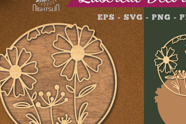 Intra απο ξύλο plywood 3mm-4mm πάχος – Λουλούδια Στρογγυλή διακόσμηση κομμένη με λέιζερ 6 Δίασταση 20×20 cm INTRAFABR-112909880