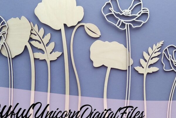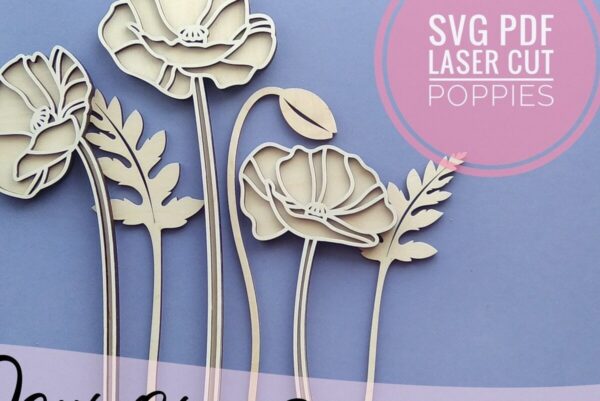 Intra απο ξύλο plywood 3mm-4mm πάχος – Λουλούδι κομμένο με λέιζερ Poppy Δίασταση 20×20 cm INTRAFABR-33675358