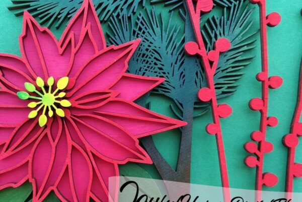 Intra απο ξύλο plywood 3mm-4mm πάχος – Λουλούδι κομμένο με λέιζερ Poinsettia Δίασταση 20×20 cm INTRAFABR-34380322