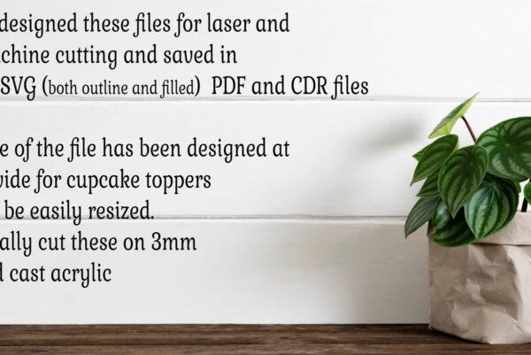 Λουλούδι Cupcake Toppers, 7 σχέδια Πρόκειται για ψηφιακό σχεδίου, ιδανικό για κοπή με ή plotter. Κατασκευασμένο απο Ξύλο από plywood [3mm ή 4mm], κομμένο με ακρίβεια στην βιοτεχνία Intrahome . Το φυσικό ξύλο προσφέρει μια κομψή, αυθεντική υφή και μπορεί εύκολα να βαφτεί ή να διακοσμηθεί σύμφωνα με το προσωπικό σας γούστο. Ελληνική παραγωγή – Κατασκευάζεται στην Ελλάδα με προσοχή στη λεπτομέρεια και υψηλές προδιαγραφές ποιότητας. ✔️ Υλικό: Plywood υψηλής ποιότητας ✔️ Διατίθεται σε πάχος 3mm ή 4mm ✔️ Ελαφρύ, ανθεκτικό και εύκολο στη χρήση ✔️ Ιδανικό για βάψιμο, χάραξη, κόλληση και χειροτεχνίες ✔️ Κατάλληλο για μπομπονιέρες, διακόσμηση, δώρα και DIY projects ✅ Εγγύηση 2 ετών – Σε περίπτωση σπασίματος, η αντικατάσταση γίνεται άμεσα, χάρη στην τοπική ελληνική παραγωγή μας. Ιδανικό για δημιουργικούς ανθρώπους που αγαπούν το DIY. Μπορεί να γίνει ξεχωριστό δώρο με προσωπικό χαρακτήρα. Φέρνει “χειροποίητη” αισθητική στη διακόσμηση. -files- Ελληνική χειροποίητη παραγωγή → στηρίζετε τοπικούς δημιουργούς. Κάθε κομμάτι έχει τη δική του φυσική ξύλινη υφή (μοναδικότητα). Δυνατότητα ειδικής παραγγελίας (άλλα μεγέθη / σχήματα). Άμεση ανταπόκριση & υποστήριξη. Εγγύηση αντικατάστασης (ήδη το έχεις). Μπορεί να μετατραπεί σε προσωποποιημένο αντικείμενο με χάραξη ή χρώμα. -files– Μη τοξικό υλικό → ασφαλές για παιδιά (με επίβλεψη). Ελαφρύ και εύκολο στη μεταφορά. Συσκευάζεται με προστασία για να φτάνει πάντα άθικτο. -files–files- Ιδανικό για event planners, καταστήματα ειδών δώρου, κατασκευαστές . Διατίθεται σε χονδρική με ειδικές τιμές & εκπτώσεις σε ποσότητα. Ανοιχτές Αποχρώσεις