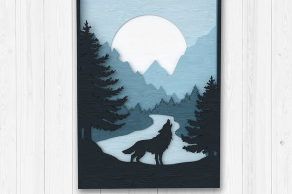 Intra απο ξύλο plywood 3mm-4mm πάχος – Λύκος που ουρλιάζει Δάσος Σκηνή Δίασταση 20×20 cm INTRAFABR-113766347