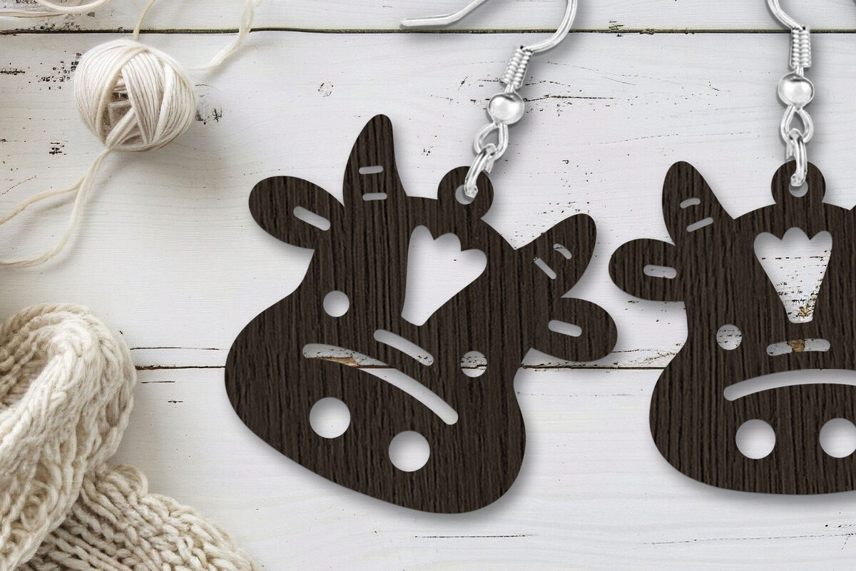 Intra απο ξύλο plywood 3mm-4mm πάχος Μαύρα σκουλαρίκια ζώων φάρμας αγελάδων Δίασταση 1×1 cm INTRAFABR-118835370