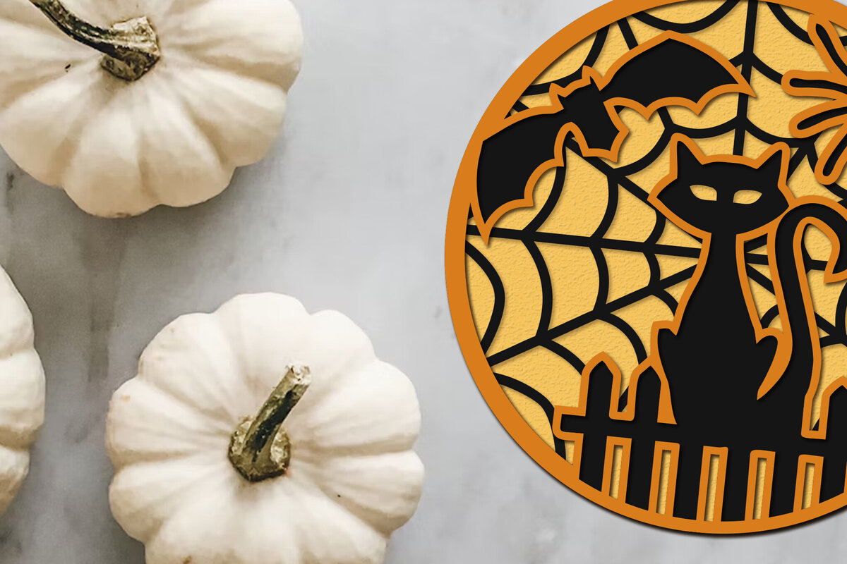 Intra απο ξύλο plywood 3mm-4mm πάχος Μαύρη γάτα κρεμάστρα πόρτας αποκριών Δίασταση 15×15 cm INTRAFABR-103650458