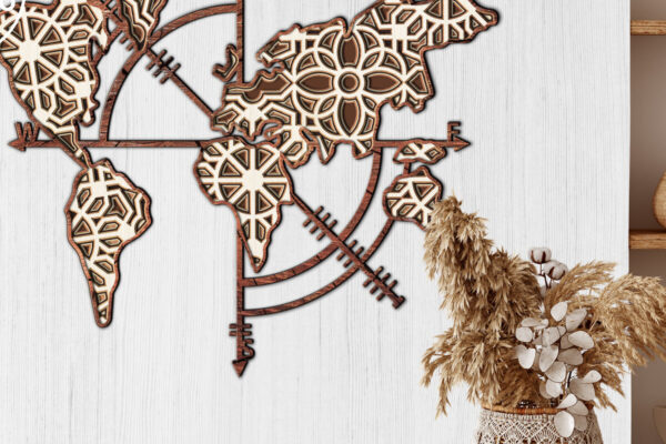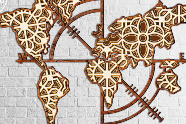 Intra απο ξύλο plywood 3mm-4mm πάχος – με λέιζερ πολλαπλών επιπέδων χάρτη πυξίδας Δίασταση 24×28 cm INTRAFABR-12636931