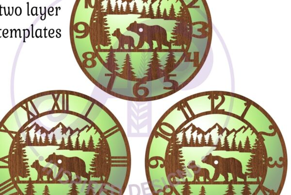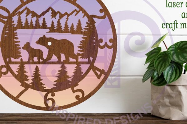 Intra απο ξύλο plywood 3mm-4mm πάχος – με λέιζερ ρολόι τοίχου Forest Bear, Δίασταση 30×20 cm INTRAFABR-88402536