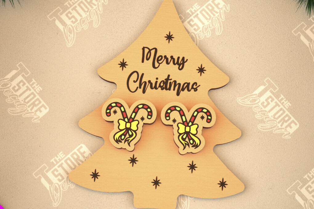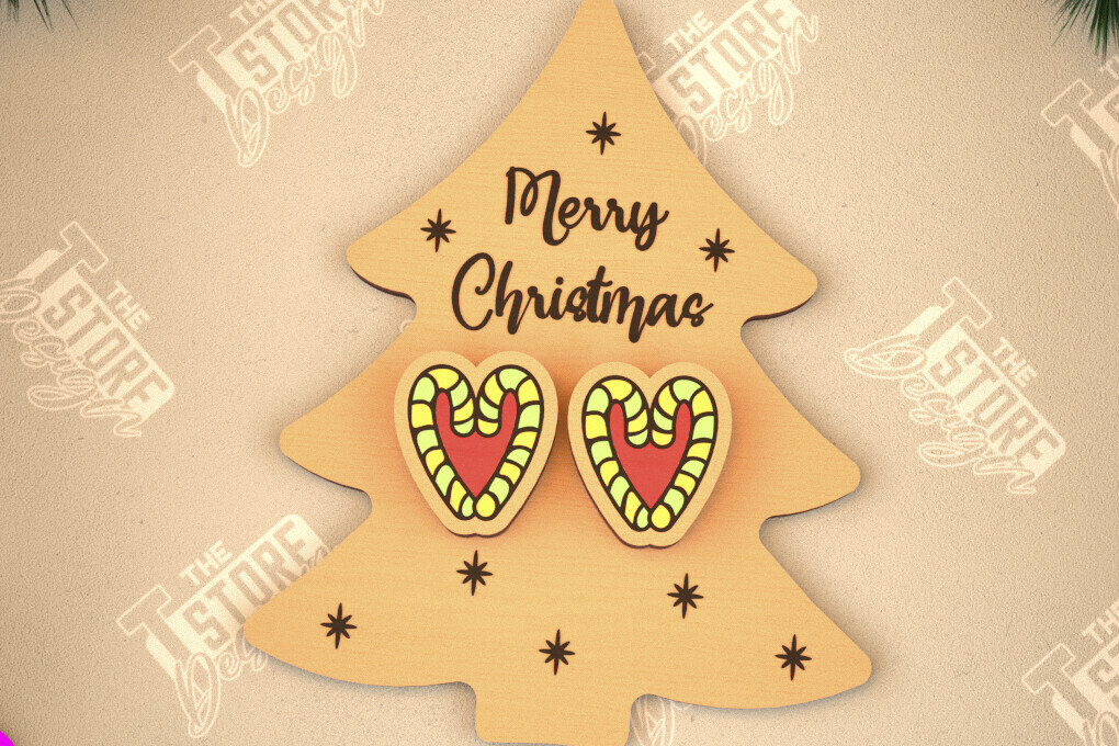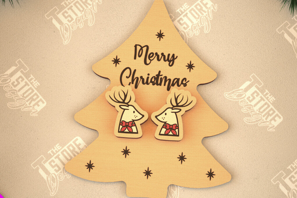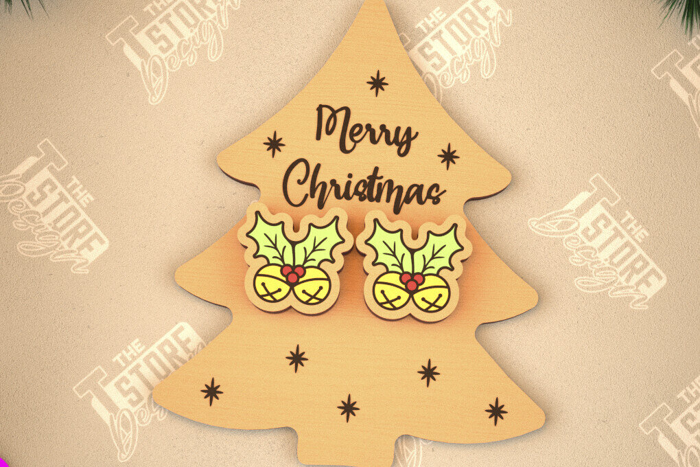 Intra απο ξύλο plywood 3mm-4mm πάχος με χριστουγεννιάτικα σκουλαρίκια | Κοσμήματα Δίασταση 3×3 cm INTRAFABR-105341584
